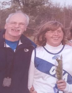 The next was running hills, and sometimes it was so bad that I had to walk going up as I didn’t have the balance and overall motor control to run them well. Thankfully I noticed this bump was a minor inconvenience and a normal one. This allowed me to work very closely with my coaches and teammates, which made running hills easier for me because I knew I had a great support system that motivated me to overcome this bump. However, what really helped is how Jim always said to us, “Let hills be your friends” during the workouts with us. His positivity made us all laugh, and gradually this made hills be a real positive experience for all of us as we conquered the challenge together. Years later, I still think of his comment when I need to conquer a big hill, and it reminds me why my memories of Cross-Country are special.